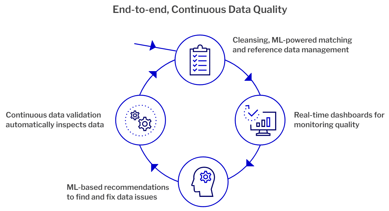 - Continuous data validation so you can automatically identify and correct data issues quickly and easily