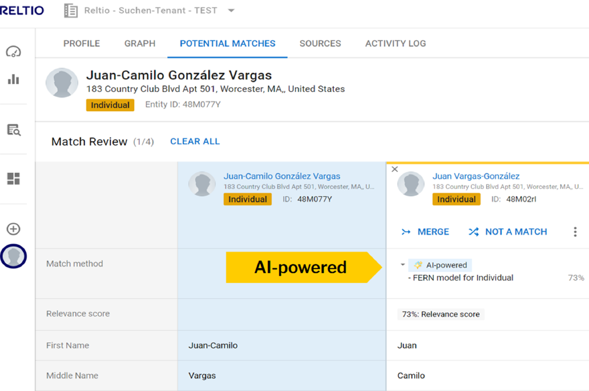 Consolidated profiles with 99%+ automated matching.