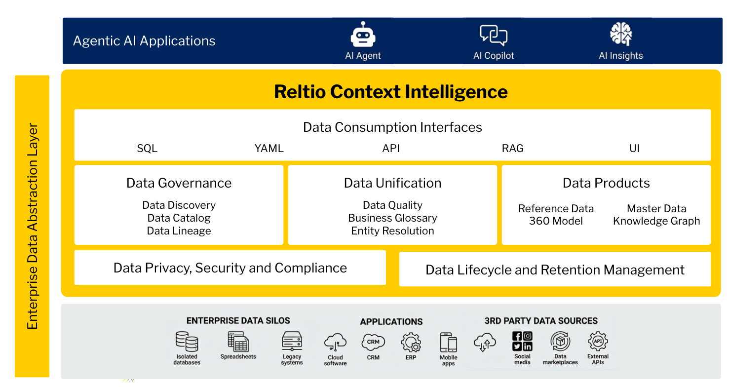 Enterprises need a complete, governed abstraction layer that sits between chaotic enterprise data silos and intelligent AI applications. It connects, governs and activates data in real-time, enabling safe and scalable multi-modal consumption via modern technology and interfaces.