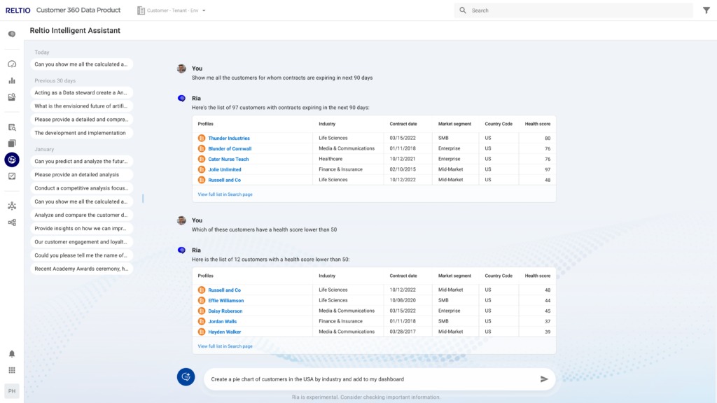 Reltio Intelligent Assistant – enhanced genAI capabilities