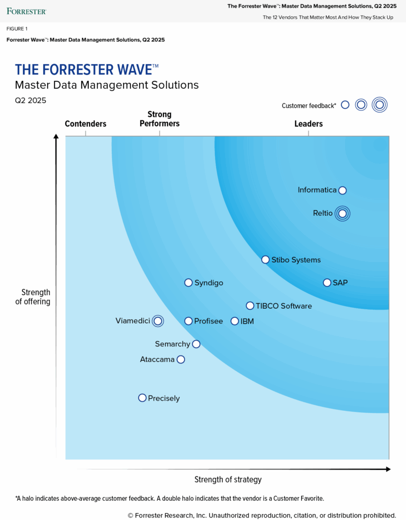 That’s why we’re proud to share that Reltio has been named a Leader in The Forrester Wave™: Master Data Management Solutions, Q2 2025 report. Even more meaningful: we’ve been recognized as a “Customer Favorite”—a distinction that we believe reflects our customer-centric innovation and the trust our customers place in us to deliver the data foundation they need to transform their businesses.